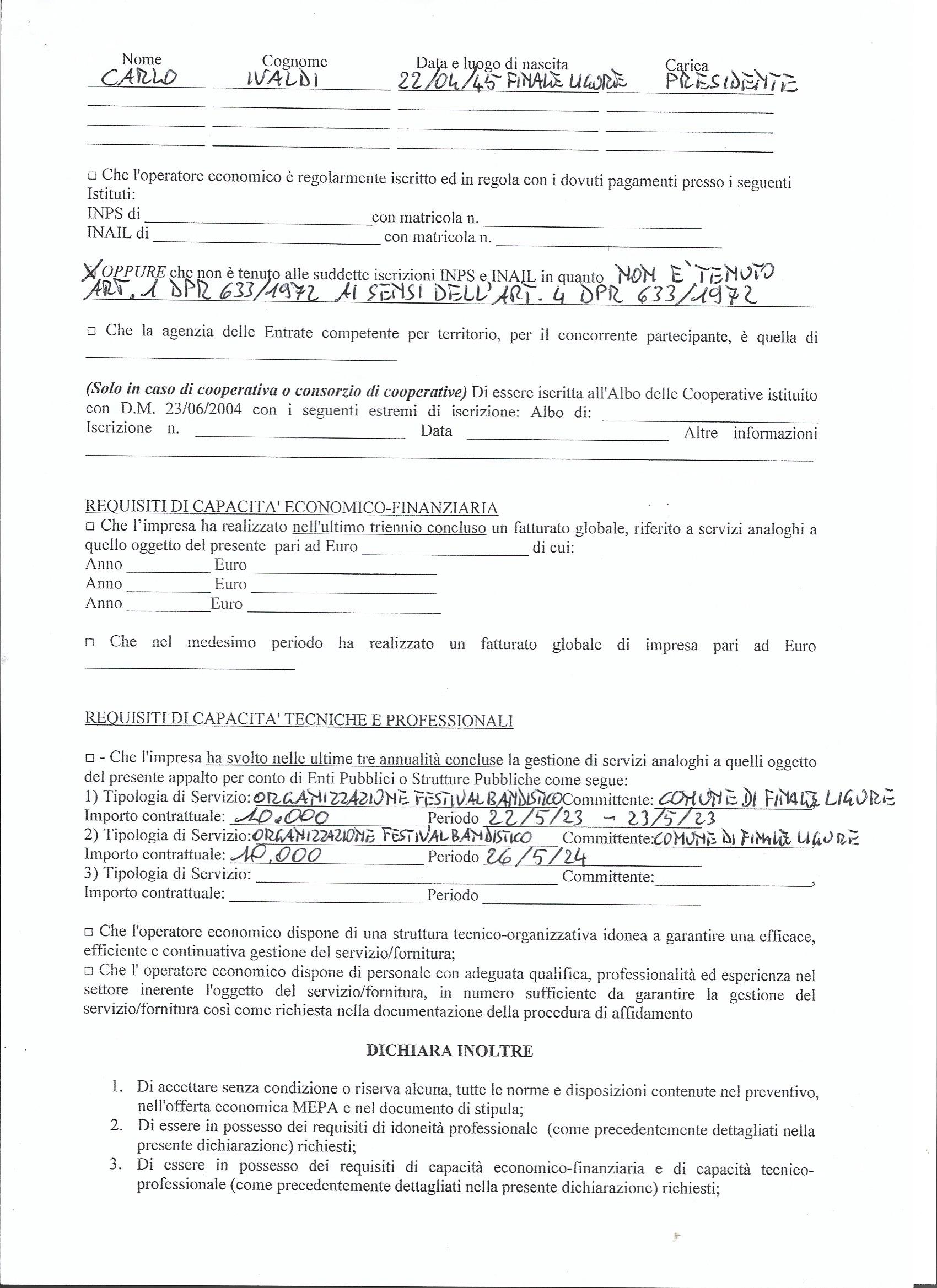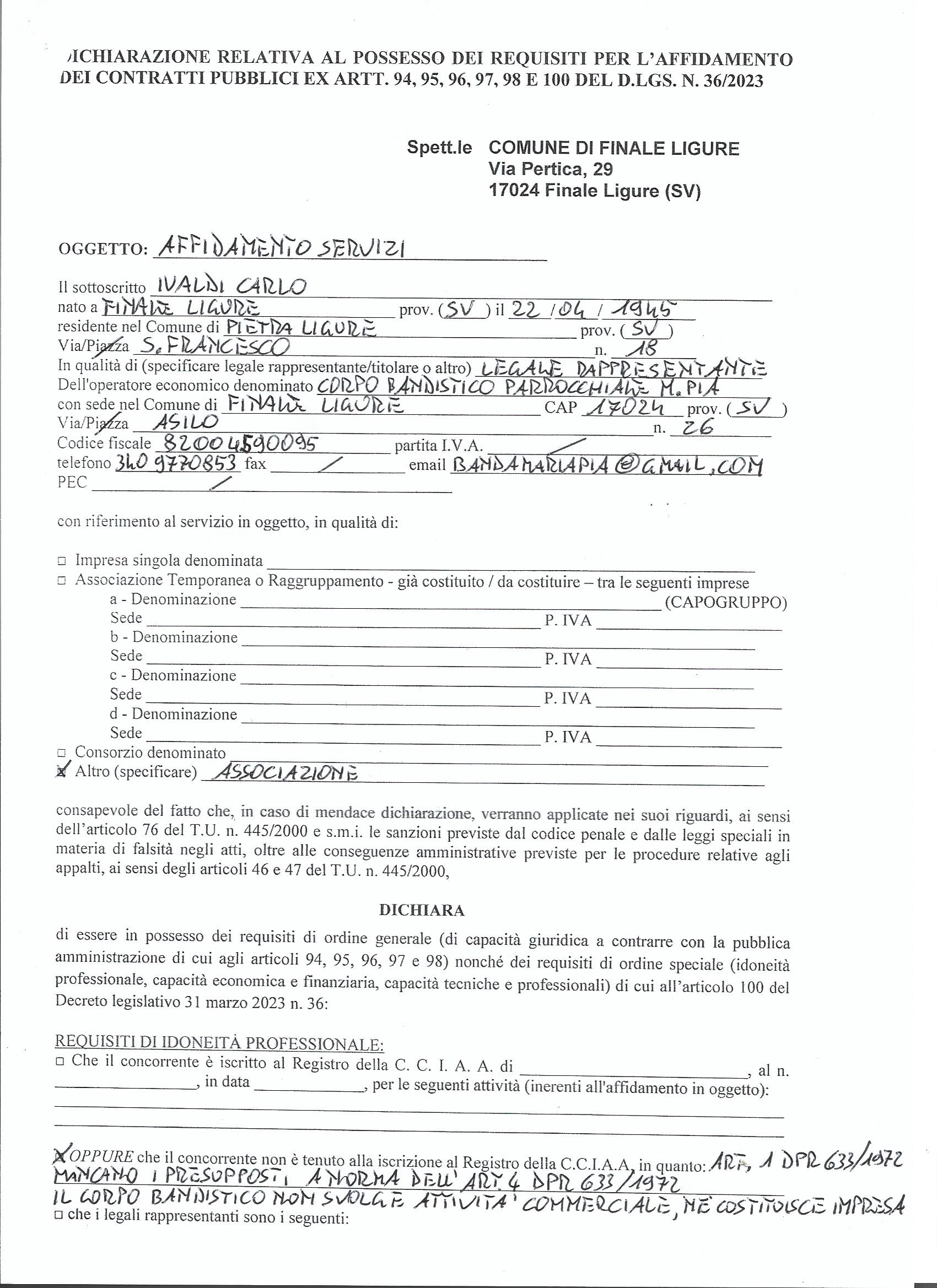 Festival Bandistico "Città di Finale Ligure" (25/05/25) con la partecipazione di 6 Corpi Bandistici per un totale di euro 10000 (diecimila/00)